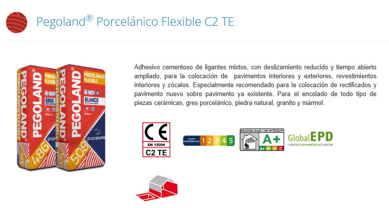Adhesivo cementoso de ligantes mixtos, con deslizamiento reducido y tiempo abierto ampliado, para la colocación de pavimentos interiores y exteriores, revestimientos interiores y zócalos. Especialmente recomendado para la colocación de rectificados y pavimento nuevo sobre pavimento ya existente. Para el encolado de todo tipo de piezas cerámicas, gres porcelánico, piedra natural, granito y mármol.